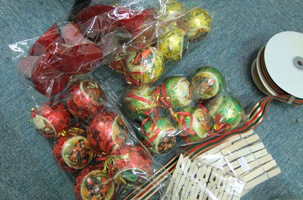 買了這麼一大袋後接著奔去聖誕樹的家,直接把這些裝飾品要掛在樹上看看效果。